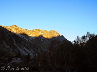 Un peu plus haut, le soleil commence à caresser l'antenne du pic du Midi
